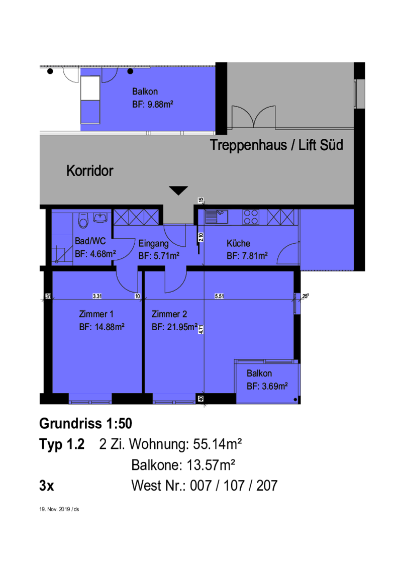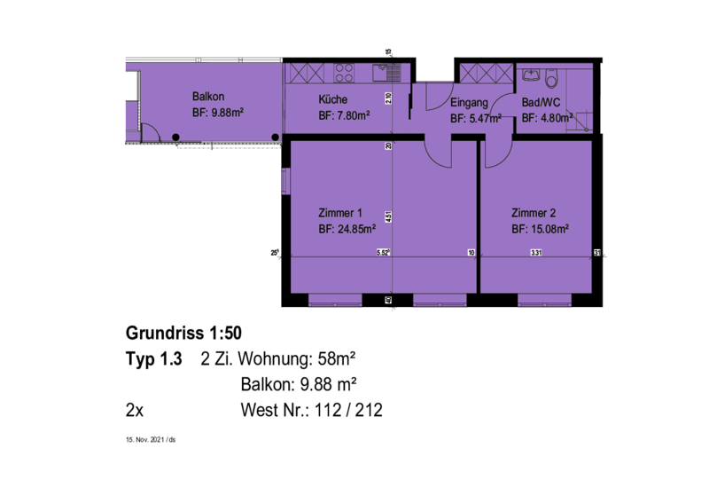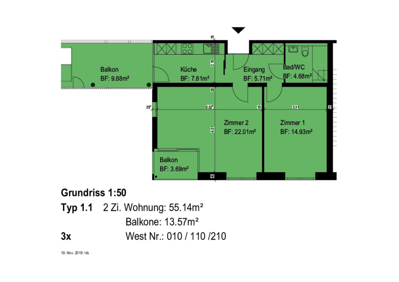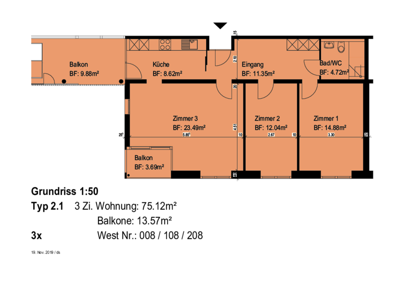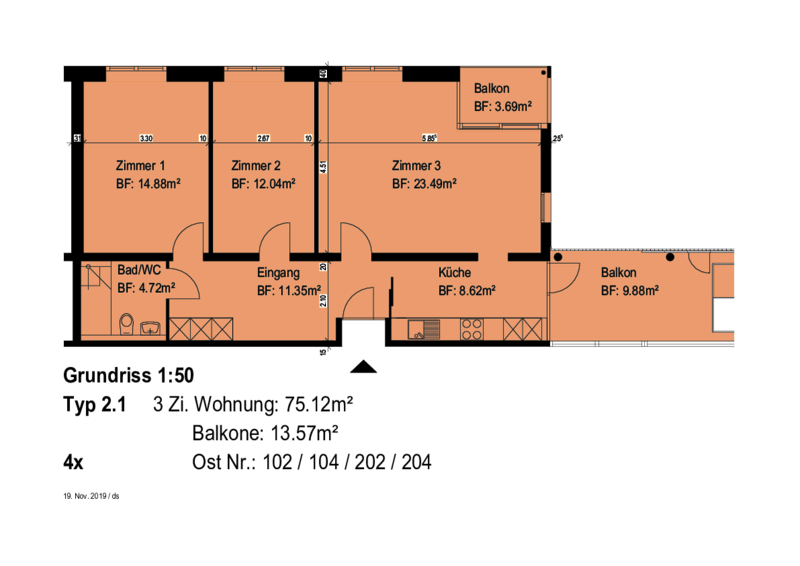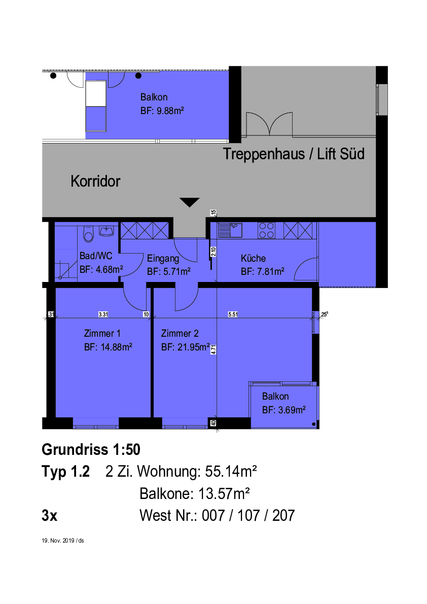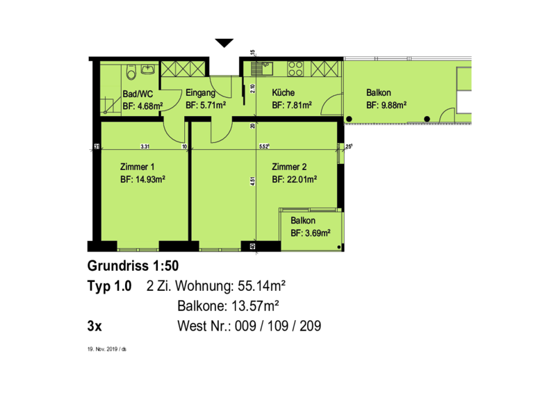 Das Haus beinhaltet 7 Wohnungen des Typs 2.1.