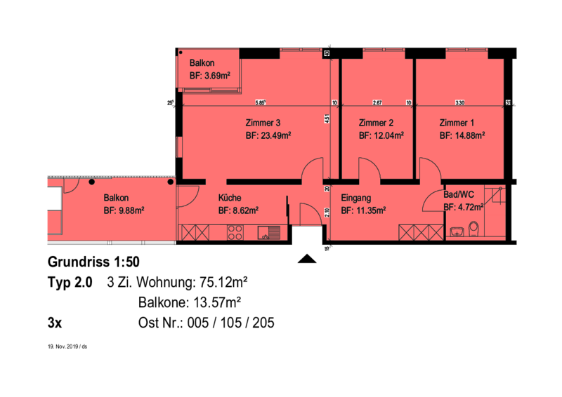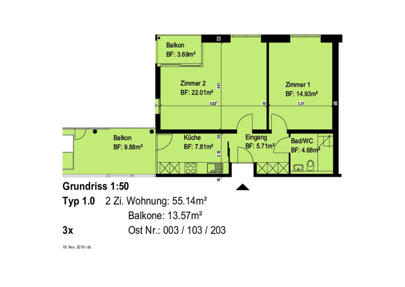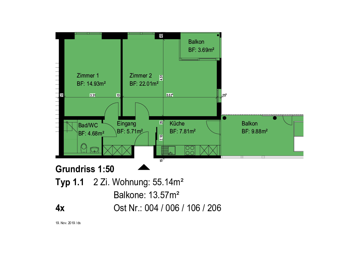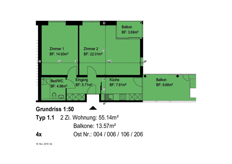 Das Haus beinhaltet 6 Wohnungen des Typs 1.1.